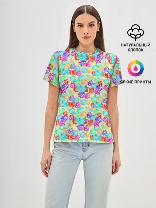 Женская базовая футболка / Новогодние Игрушки и Подарки
