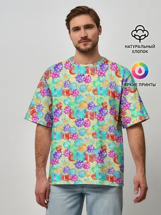 Мужская футболка оверсайз / Новогодние Игрушки и Подарки