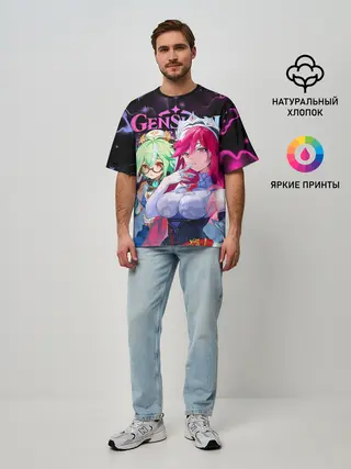 Мужская футболка оверсайз / Розария и Сахароза, Genshin Impact