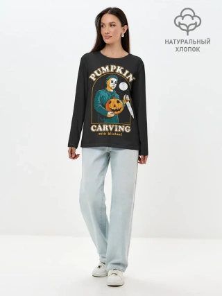 Лонгслив женский. Хлопок / Резьба по тыкве с Майклом