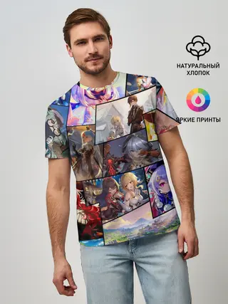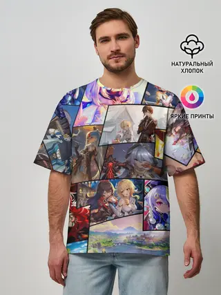 Мужская футболка оверсайз / Геншин импакт, персонажи