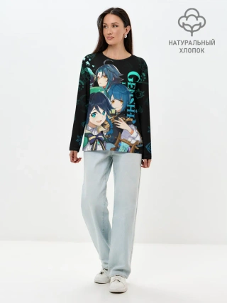 Лонгслив женский. Хлопок / Genshin Impact: Венти, Син Цю, Сяо