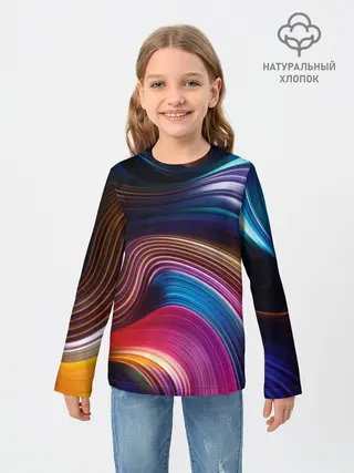 Детский лонгслив / Цветные неоновые волны