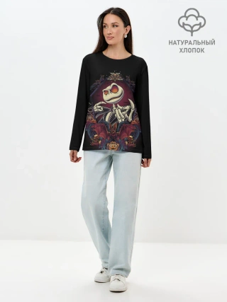 Лонгслив женский. Хлопок / Скелет Хэллоуин