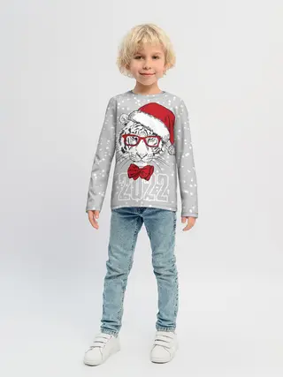 Детский лонгслив / Белый тигр в шапке Санты