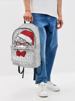 Рюкзак детский / Белый тигр в шапке Санты