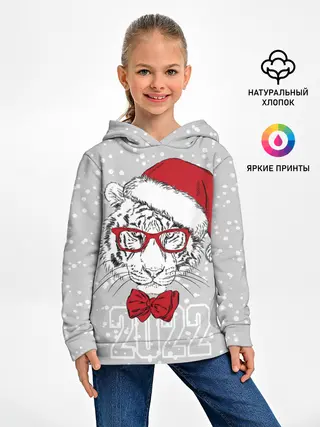 Детское худи / Белый тигр в шапке Санты