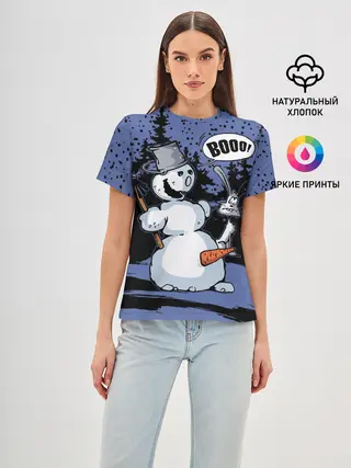 Женская футболка оверсайз / Снеговик на Хэллоуин