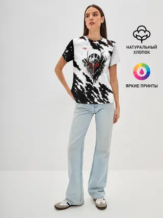 Женская футболка оверсайз / Берсерк маска с красными глазами