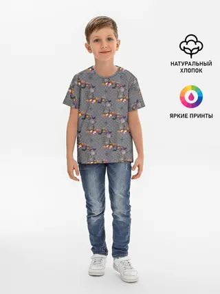 Детская базовая футболка / Кот с тыквой хэллоуин