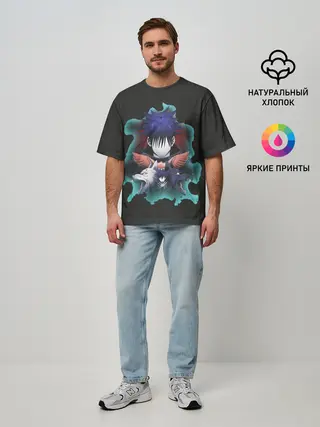 Мужская футболка оверсайз / Мегуми два волка Магическая битва