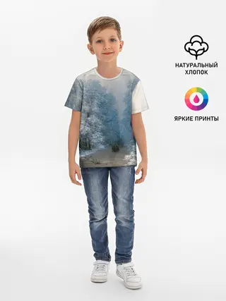 Детская базовая футболка / Зимний пейзаж картина маслом