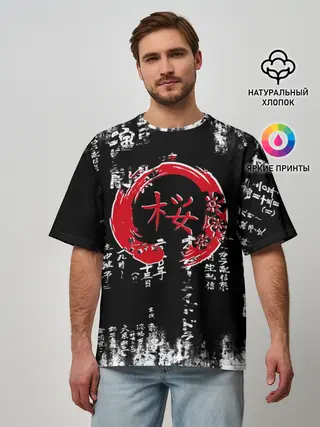 Мужская футболка оверсайз / Кандзи Сакура Иероглифы Аниме