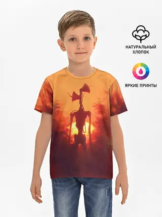 Детская базовая футболка / СИРЕНОГОЛОВЫЙ НА ЗАКАТЕ