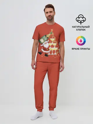 Мужская пижама с брюками / Дед Мороз и шампанское