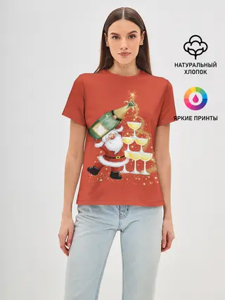 Женская футболка оверсайз / Дед Мороз и шампанское