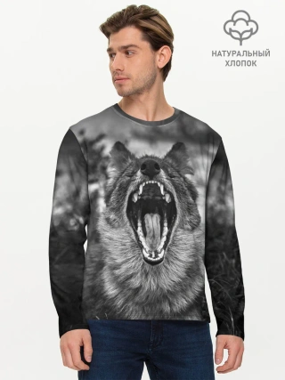 Мужской лонгслив базовый / Волчья пасть, зевает
