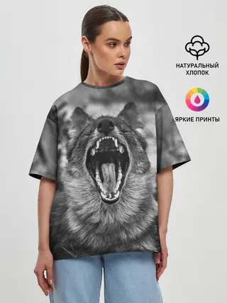 Женская футболка оверсайз / Волчья пасть, зевает