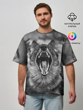 Мужская футболка оверсайз / Волчья пасть, зевает