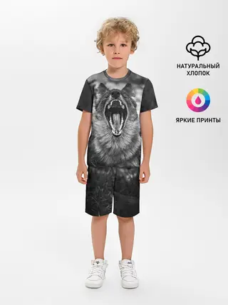 Детская пижама с шортами / Волчья пасть, зевает