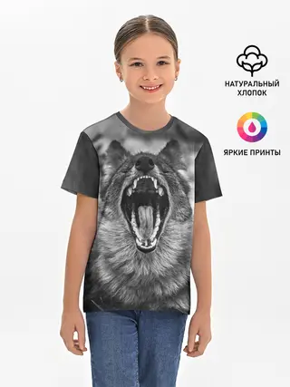 Детская базовая футболка / Волчья пасть, зевает