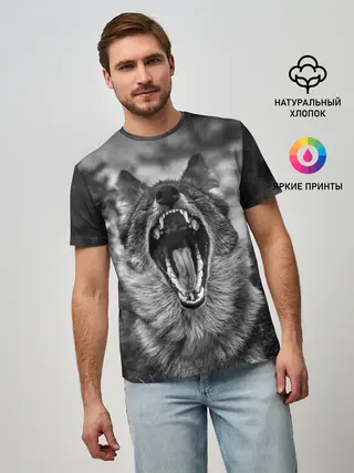 Мужская базовая футболка / Волчья пасть, зевает
