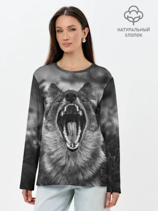Лонгслив женский. Хлопок / Волчья пасть, зевает