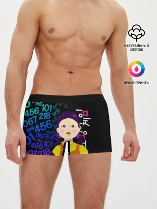 Мужские трусы боксеры / ИГРА В КАЛЬМАРА / SQUID GAME / КУКЛА / УЗОР
