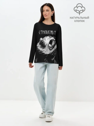 Лонгслив женский. Хлопок / Страха нет, медведь