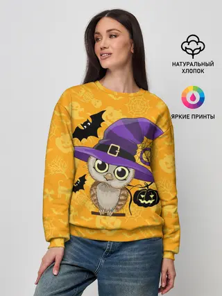 Мужской лонгслив базовый / Совушка и хэллоуин