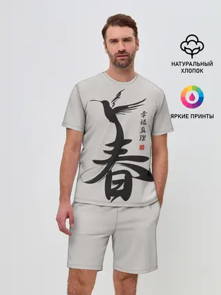 Мужской костюм с шортами / Иероглиф Весна, Счастье, Истин