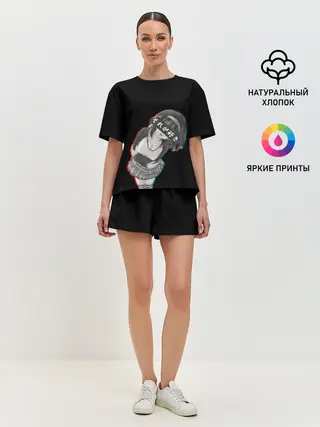 Женская пижама с шортами / Anime Girl with hieroglyphs
