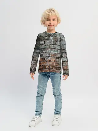 Мужской лонгслив базовый / кирпичная стена потеки краска