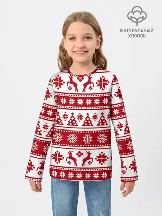 Детский лонгслив / Новый Год | Олени и снежинки