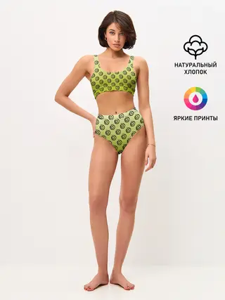 Мужские трусы с футболкой / узор спиральки на желтом фоне