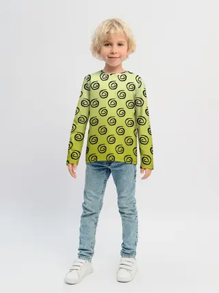 Мужской лонгслив базовый / узор спиральки на желтом фоне