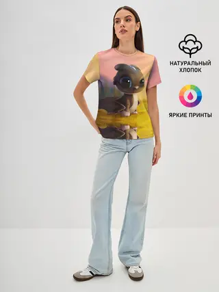 Женская базовая футболка / Дракончик на берегу озера