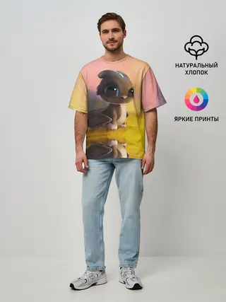Мужская футболка оверсайз / Дракончик на берегу озера