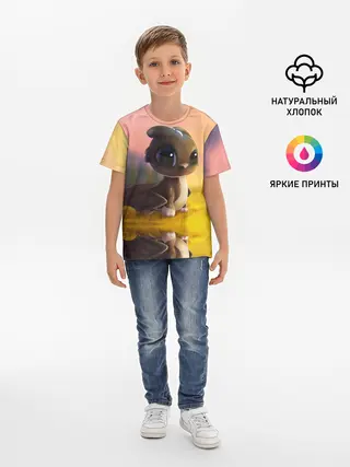Детская базовая футболка / Дракончик на берегу озера