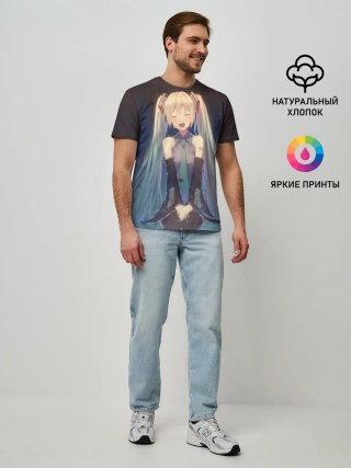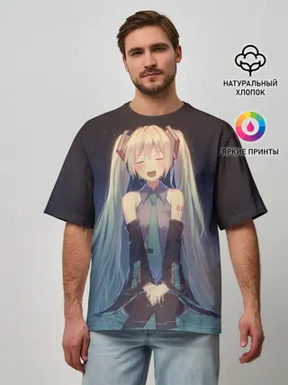 Мужская футболка оверсайз / Хатсуне сидит прикрыв глаза