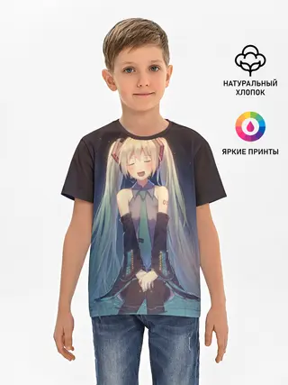 Детская базовая футболка / Хатсуне сидит прикрыв глаза
