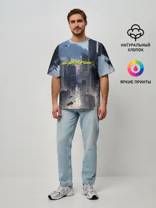 Мужская футболка оверсайз / Cyberpunk 2077 city