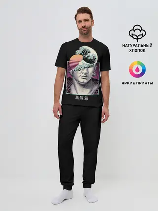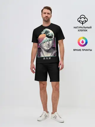 Мужской лонгслив базовый / Цветные треугольники_ салатовы