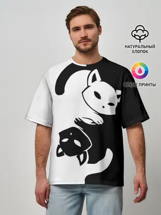 Мужская футболка оверсайз / ДВА КОТА КУВЫРКАЮТСЯ.