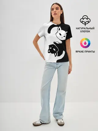 Женская базовая футболка / ДВА КОТА КУВЫРКАЮТСЯ.