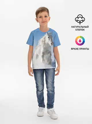 Мужской лонгслив базовый / Белая лошадь на снегу
