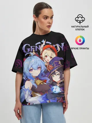 Женская футболка оверсайз / Genshin Impact: Гань Юй, Кли, Мона