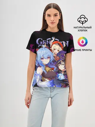 Женская базовая футболка / Genshin Impact: Гань Юй, Кли, Мона