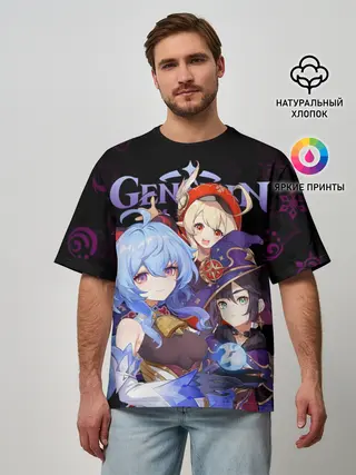 Мужская футболка оверсайз / Genshin Impact: Гань Юй, Кли, Мона