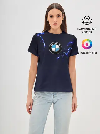 Лонгслив женский. Хлопок / BMW разряд молнии.
